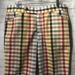 197’0S FUNKY GINGHAM STYLE PRINT W/ FLARED POLYESTER PANTS