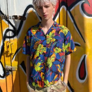 NEON HAWAIIAN SHORT SLEEVE BUTTON UP RAYON SHIRT W/ CAMP COLLAR