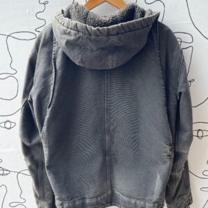 FADED BLACK DENIM HOODED ZIPPER FRONT JACKET FAUX SHERPA LINING