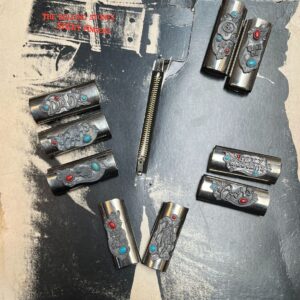 ETCHED PEWTER ARMED RANCHER DESIGN CORAL & TURQUOISE INLAY LIGHTER SLEEVE