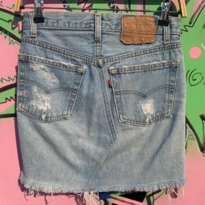 CUTE! SUPER LIGHT WASH DISTRESSED REWORKED DENIM MINI SKIRT