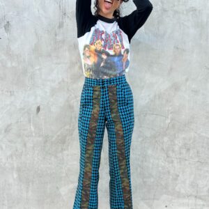 1990S CHUNKY WOVEN HOUNDSTOOTH & CAMO TAPING LIGHT FLARE TROUSERS