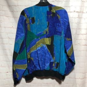 1990’S LIGHTWEIGHT BOMBER JACKET W/ PAINTERLY DESIGN & RIBBED CUFFS/ COLLAR/HEM