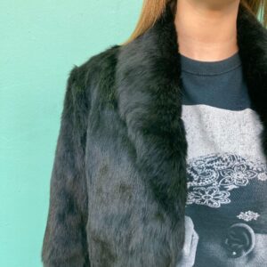 GORGEOUS SATIN LINED RABBIT FUR COAT JACKET HOOK & EYE CLOSURE