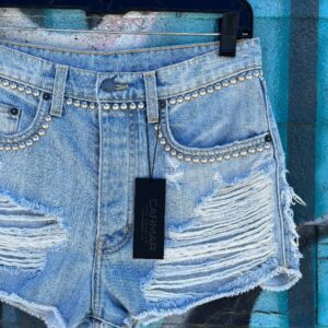 STUDDED & FRAYED DENIM CUTOFF SHORTS