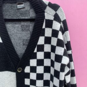 MIX MATCH CHECKERED PATTERN KNIT CARDIGAN SWEATER