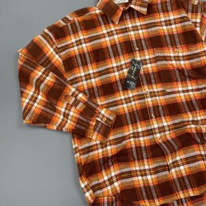 1990S DEADSTOCK NWT SOFT ORANGE PLAID LONG SLEEVE BUTTON UP FLANNEL