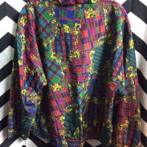 SILK WINDBREAKER FLORAL PRINT W/ PLAID BACKGROUND
