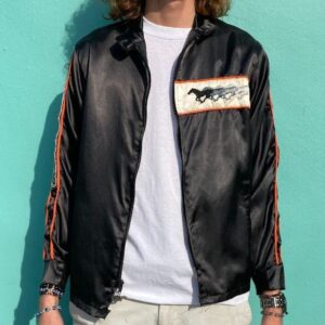 SATIN ZIP UP RACING JACKET EMBROIDERED PATCH MUSTANG HORSE DETAILS