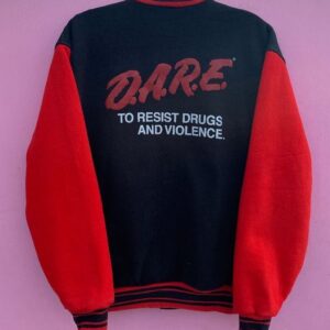DARE TO RESIST DRUGS 100% COTTON VARSITY BUTTON UP JACKET W/ FRONT AND BACK LOGO SMALL FIT
