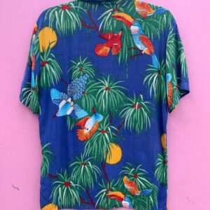 AWESOME O.P. TROPICAL BIRD DESIGN BUTTON UP SHORT SLEEVE SHIRT *SMALLER FIT