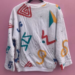 AS-IS 1980S ALLOVER SHAPES PRINT PUFFY REVERSIBLE SWEATSHIRT SMALL FIT