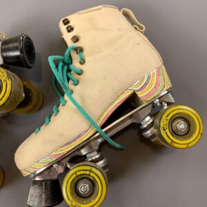 CUTE! SUEDE LACE UP ROLLER SKATES GLITTER WHEELS TURQUOISE LACES