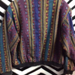 BOMBER JACKET W/MULTI-COLOR ETHNIC PATCHWORK DESIGN