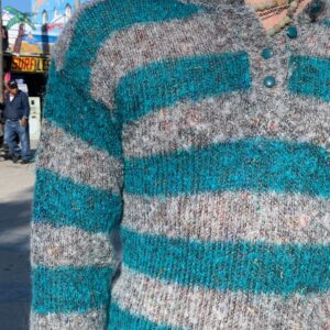 FUZZY STRIPED DESIGN QUARTER BUTTON KNIT SWEATER MULTICOLORED THREADS