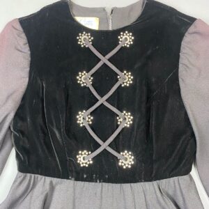 ADORABLE! 1960S LONG SLEEVE RHINESTONE LACEUP VELVET & CHIFFON LONG SLEEVE MINI DRESS