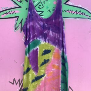 *SIGNED! ABSTRACT TIE-DYE PRINT SLEEVELESS OVERSIZED COTTON DRESS