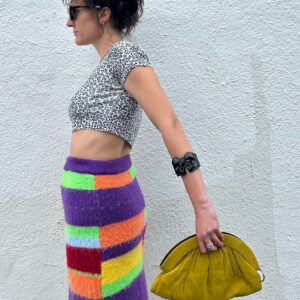 RETRO PLEATED FELT CHARTREUSE ZIPPERED CLUTCH