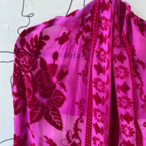FLORAL VELVET BURNOUT SHAWL WITH TASSEL TRIM