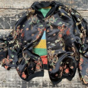 URBAN RENEWAL BLACK SATIN BROCADE DRAGON BOMBER JACKET