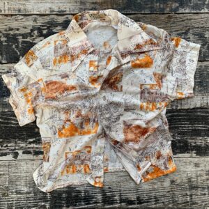 1980S OVERSIZED ACID WASH DENIM SHIRT WITH CHECKERED PATCHWORK AND SNAPS
