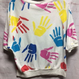 1980’S SHORT SLEEVE ALLOVER HANDPRINT DESIGN CREWNECK TOP