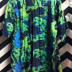 HAWAIIAN SHIRT ABSTRACT GREEN BLUE LEAF PATTERN as-is