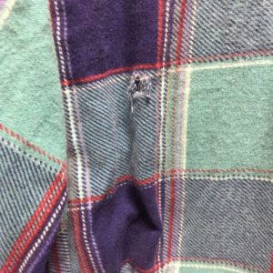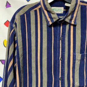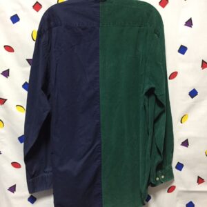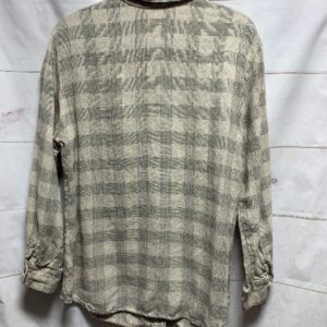 DISTRESSED CUSTOM DYED LONG SLEEVE BUTTON UP FLANNEL SHIRT WITH CORDUROY COLLAR – AS IS