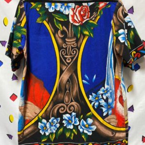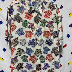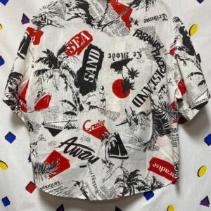 COLLAR HAWAIIAN SHIRT FRONT TIE LARGE WHITE BUTTONS PARADISE PRINT