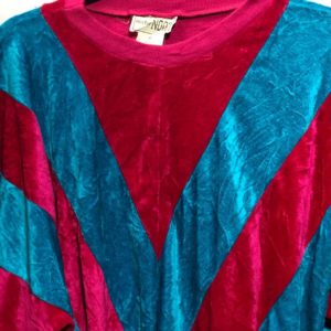RETRO VELOUR CHEVRON PATTERN COLOR-BLOCK DESIGN SWEATER