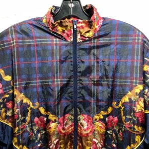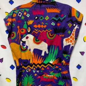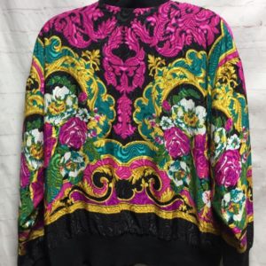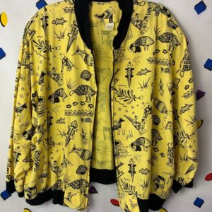SUPER RAD & RARE 1980S-90S FUNKY SOUTHWESTERN PRINTED ZIPUP COTTON JACKET RIBBED COLLAR & CUFFS AS-IS