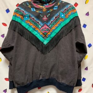 RADICAL 1980S COTTON ZIP UP JACKET WITH FRINGE AND AZTEC PRINT