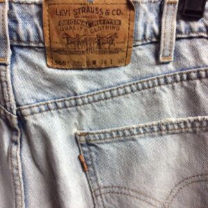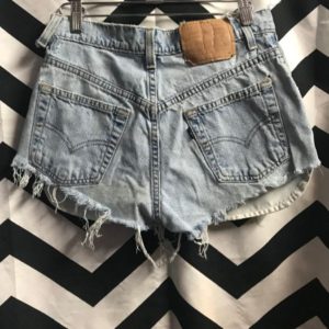 LEVIS DENIM SHORTS – 505 – ORANGE TAB – ACID WASHED – FRAYED HEM