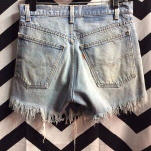 LEVIS DENIM SHORTS – CUTOFF – LONGER CUT – DISTRESSED – ORANGE TAB – LIGHT ACID WASH