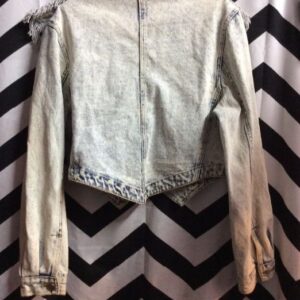 DENIM JACKET – CROPPED ACID WASH – HANGING COIN EMBELLISHMENT ON POCKETS – EPAULETTES