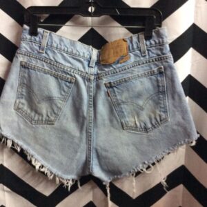 LEVIS DENIM SHORTS – CUTOFF – 555 – ORANGE TAB – ZIP-FLY – FRAYED