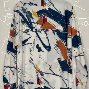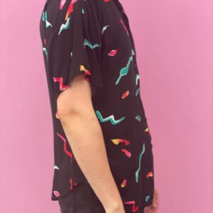 1980S BRIGHT ABSTRACT PRINT SHORT SLEEVE CREW NECK SWEATSHIRT TOP W/ V-CUT HEMMRead more