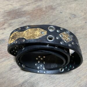 AS-IS PRADA STUDDED LEATHER BELT W/ SNAKESKIN PATCHES AND GROMMETS