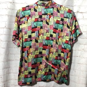1980’S CRAZY COLOR BLOCK DESIGN HORIZONTAL STRIPE ZIG-ZAG PATTERN ZIP-UP JACKET