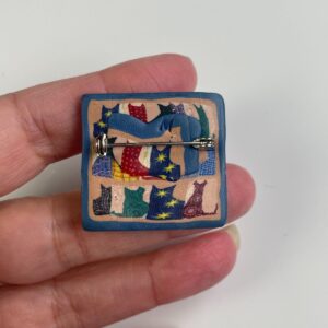 SQUARE FIMO CLAY COLORFUL CAT DESIGN BROOCH PIN