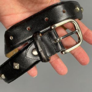 SO GOOD! BLACK POLISHED LEATHER LADIES DRESS BELT W/ DIAMOND SHAPED STUDDING