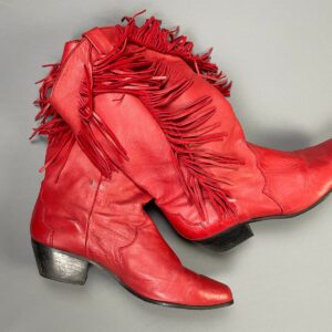 1980S BUTTER SOFT LEATHER FRINGE COWBOY BOOTS PRINTED INTERIOR