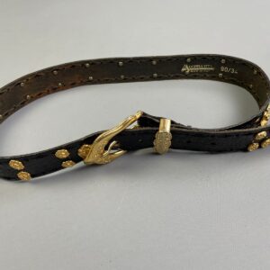 WOW! 1980S-90S CROC EMBOSSED BLACK LEATHER BELT GOLD LIONS HEAD STUDS & DOOR KNOCKER DETAILS