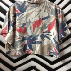 ADORABLE LIGHT WEIGHT SILK BLEND RED HAWAIIAN PRINT TIE FRONT CROPPED TOP