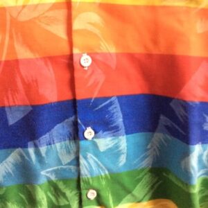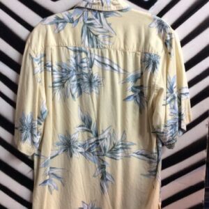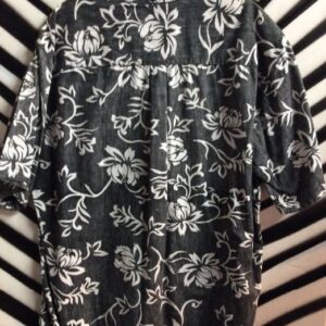 MADE IN HAWAII GOLDEN FLORAL PRINT POLYESTER HAWAIIAN SHIRT ORNATE COIN BUTTONS