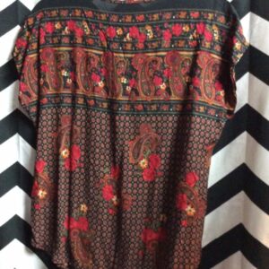PULLOVER TOP W/PAISLEY ROSES & STRIPED DESIGN