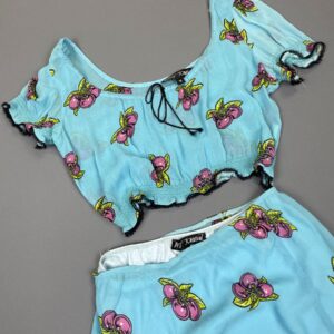 *AS-IS* AMAZING! MADE IN USA 1990S BETSEY JOHNSON SHEER ALLOVER CHERRY PRINT 2 PIECE SET