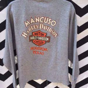 HARLEY DAVIDSON PULLOVER SWEATSHIRT, CROPPED BOTTOM, MANCUSO MOTORCYCLES, SCREEN PRINTED GRAPHICS