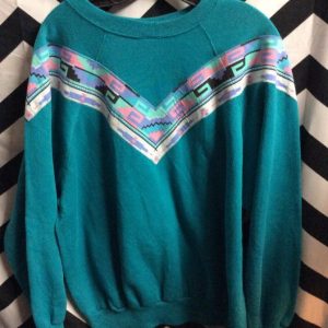 TULTEX PULLOVER SWEATSHIRT – NATIVE AMERICAN ACCENT DESIGN – STRIPED TRIM