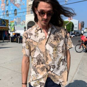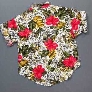 FUN! 1980S-90S TROPICAL FLORAL CHEETAH PRINT SHORT SLEEVE CROPPED BUTTON UP BLOUSE